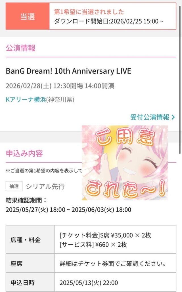 忘れもしない2月25日。座席発表+チケット配布の日でしたが、いやー。まじで奇跡起きました。